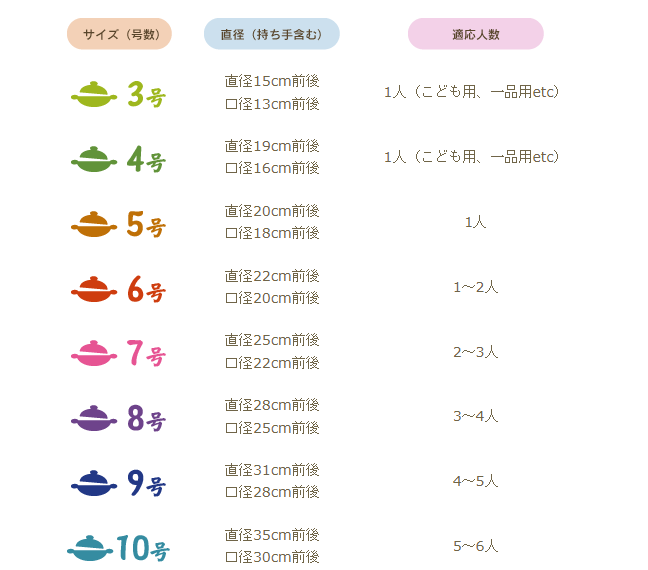 https://www.rakuten.ne.jp/gold/colorfulbox/donabe-know.html カラフルBOXより抜粋(わかりやすい)