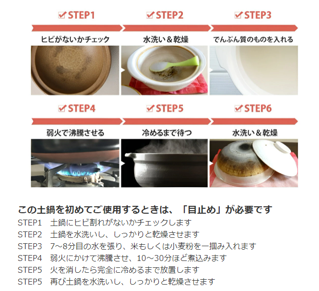 サイズを調べる中で、土鍋には使う前の下準備:「目止め」があるそうな。